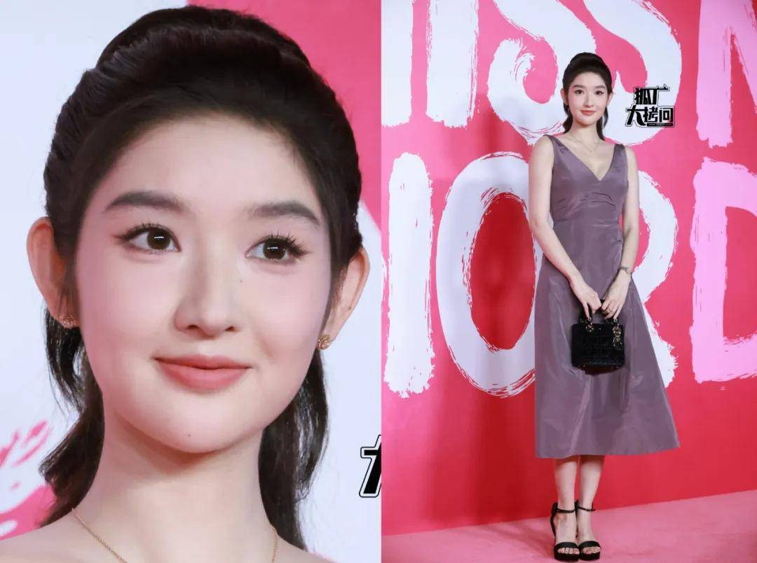 王玉雯跟迪丽热巴一样都被安排了紫色的裙子,不过王玉雯这条更显成熟,遮住脸单看这身造型(紫色连衣裙+黑色包+黑色高跟凉鞋),有点像40+高管精心打扮后出席年会的造型。