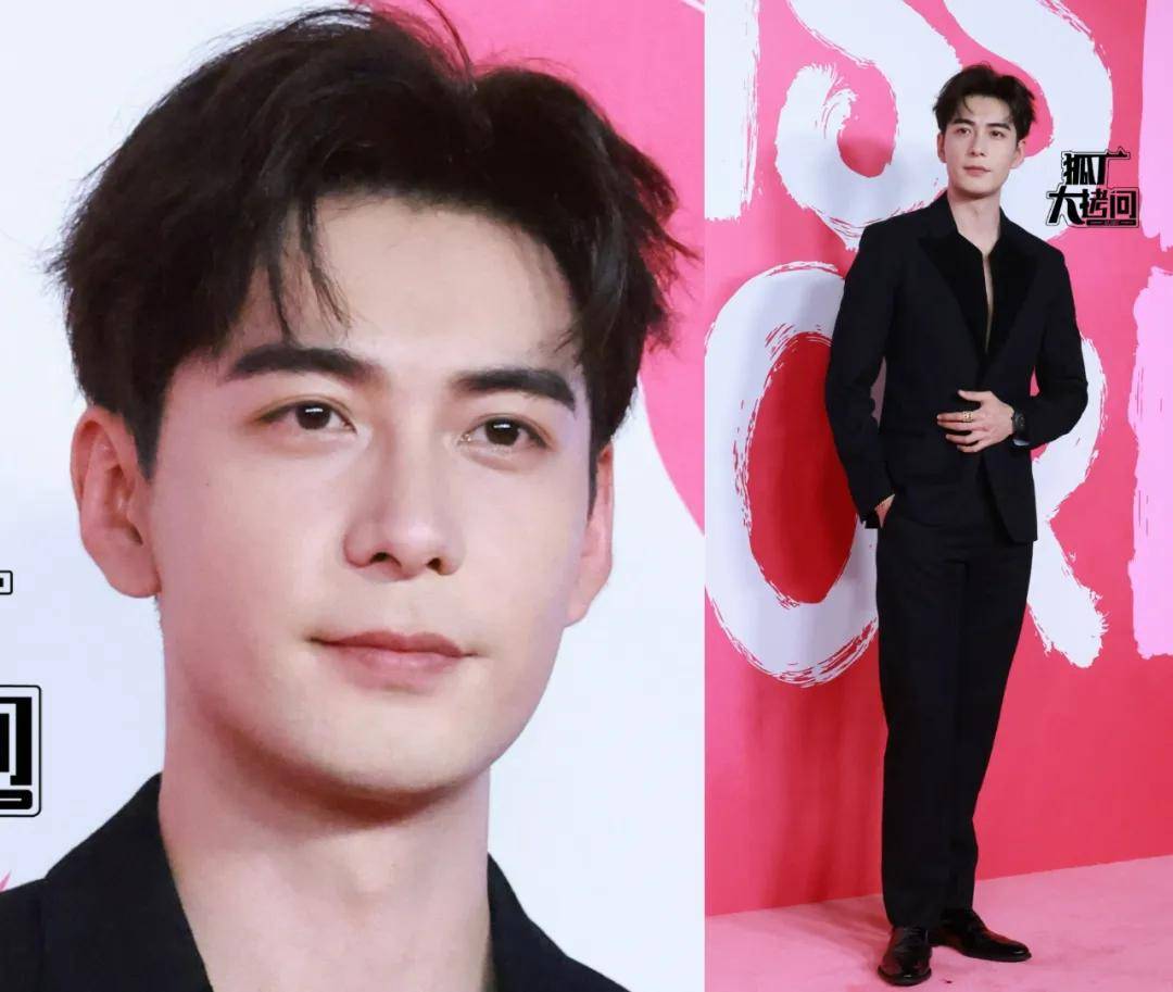 陈星旭穿的是黑色西装套装,他跟李昀锐虽然都是95后,但他的长相和气质明显更成熟。